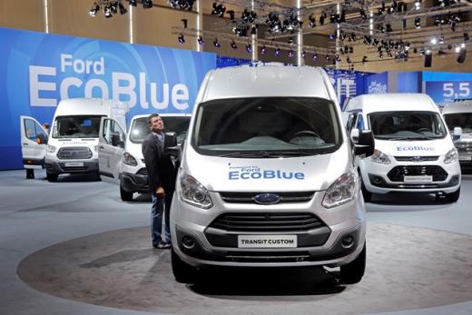 Ford EcoBlue dzinējs darbina visus transportlīdzekļus Ford Hannoveres stendā un piedāvā komerciālo transportlīdzekļu operatoriem par līdz pat 13% mazāku degvielas patēriņu salīdzinājumā ar esošo 2,2 l TDCi dzinēju, tā CO2 izmešu daudzums ir no 157 g/km, turklāt tam ir ievērojami labāki griezes momenta rādītāji pie zema dzinēja apgriezienu skaita, kas uzlabo braukšanas īpašības. Hannoverē debitē jaunā Transit un Transit Custom sešpakāpju automātiskā transmisijas versija, kā arī jaunā visu riteņu piedziņas sistēma un SYNC 3 komunikācijas sistēma.