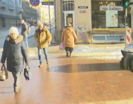 Rīgā, Brīvības un Ģertrūdes ielas krustojumā ieklāts bruģis no tāda materiāla, kas noteiktos laika apstākļos kļūst slidens un līdz ar to bīstams gājējiem.