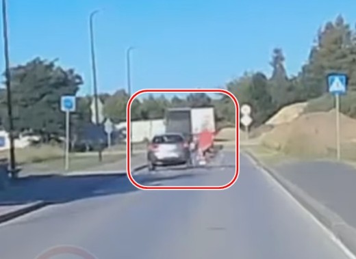 Divriteņu transportlīdzekļa vadītāja uzgriežas uz pārejas brīdī, kad uz tās jau atrodas mašīna.
