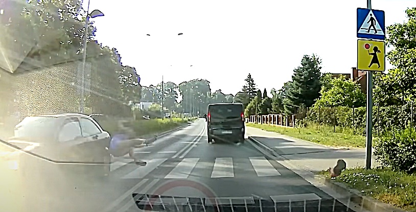 Busiņa šoferis izlaiž meiteni uz gājēju pārejas, kas nedomājot metas pāri ielai.
