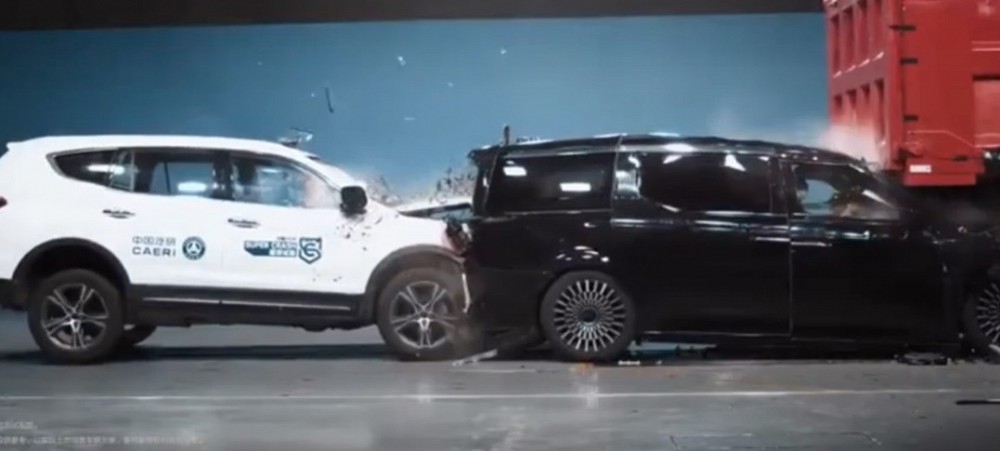 Lai pierādītu klientiem, cik drošs ir viņu ražotais transportlīdzeklis, Zeekr savam flagmanim bija izplānojis īpaši sūru scenāriju: vispirms “nulle nulle devītais”, braucot ar ātrumu 60 km/h, panāca 19-tonnīgu trīsasu kravas automašīnu, bet dažus mirkļus vēlāk 1,8 tonnas smags vidēja izmēra krosovers ar ātrumu 55 km/h no ietriecās avarējušā minivena aizmugurē.
