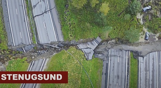 Zemes noslīdējums izveidojies pie Stenungsundas, Zviedrijas dienvidrietumos, izpostot ievēojamu automaģistrāles E6 daļu. Tiek ziņots, ka trīs cilvēki guvuši vieglas traumas un nonākuši slimnīcā, satiksme pa autoceļu pārtraukta.