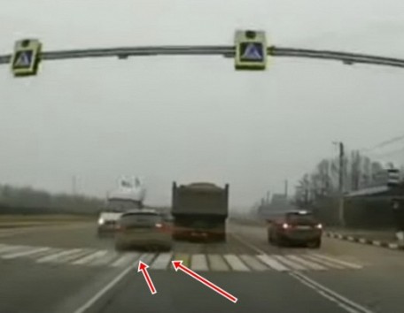 Vieglā automobiļa vadītājs veic riskantu manevru ar joslu mainīšanu un apsteigšanu pa labo pusi, taču tas beidzas ar nepatikšanām sev un citiem.