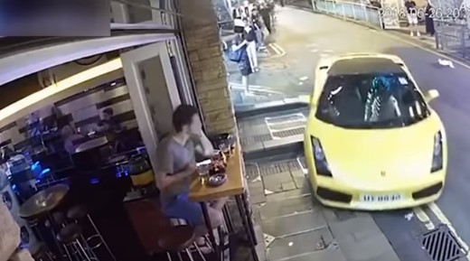 Video no Honkongas. Lamborghini Gallardo sāk ripot pa ielu, jo izkāpjot, vadītājs ir aizmirsis par stāvbremzi. Viss gan beidzas laimīgi - mašīna pieripo pie ieejas bārā un apstājas, vien apmeklētājam nākas savu galdiņu pievilkt sev tuvāk.