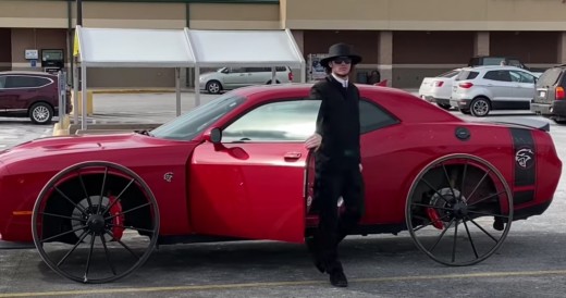 Youtube kanāla WhistlinDiesel autors uzņēmis video, kas savācis vairāk nekā 4,2 miljonus skatījumu. Galvenajā lomā ir 717 Zs jaudīgs Dodge Challenger SRT Hellcat, kas aprīkots ar neparasta izskata riteņu diskiem un ļoti šaurām riepām.