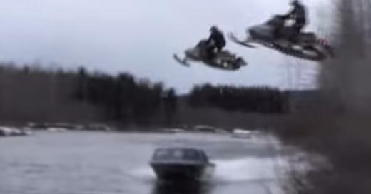 Apskatot citus šīs tematikas video, var redzēt, ka sniega motocikli uz ūdens ir jaudīgāki par ūdens motocikliem. Tikai nevajag palaist vaļā gāzi!