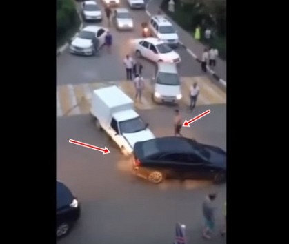 Scēna, ko nofilmējuši kādas mājas iedzīvotāji, sākas ar to, ka piedzēries "Lexus" vadītājs nolemj pazīmēties un nelielā laukumiņā mēģina "uzgriezt saulīti". No tā gan nekas neiznāk, jo kārtējā neveiksmīgajā aplī viņš aizķer "Iž", kura vadītājs pieprasa paskaidrojumus. Sākumā abas puses apmainās niknām frāzēm, tad sākas kautiņš, kurā iesaistās arī citas personas. Kad kaušļi izšķiras, "Bulku vāģa" vadītājs ielec savā mašīnā un vairākas reizes taranē "Lexus", izārdot sava spēkrata priekšu un nodarot bojājumus smalkā autiņa kreisajai aimugures daļai.
