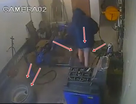 Video novērošanas kameras kādā autoservisā fiksējušas mistisku starpgadījumu, kad riepas remonta laikā, klients zibenīgi atbrīvojas no biksēm.