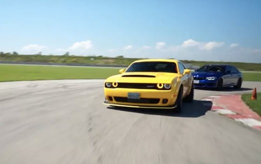 Youtube kanāla Throttle House vadītāji salīdzinājuši amerikāņu muskuļauto Dodge Challenger SRT Demon un vācu sportisko sedanu BMW M5 versijā Competition.