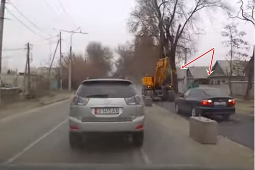 Ekskavatora vadītājs padzen nekaunīgo "nomales braucēju" (+ VIDEO)