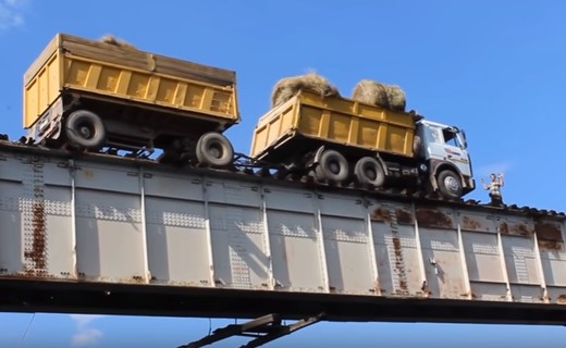 Video autors piebilst, ka "tilts" ir tērauda pamatam šķēršam uzlikti gulšņi un pa šādu klājumu jānobrauc vairāk nekā 500 metru. Ik dienu šo ārkārtīgi bīstamo konstrukciju šķērsojot vairāki desmiti kravinieku.