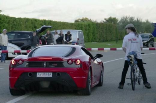 Ferrari pret velosipēdu - 333 km/h un vienos vārtos par labu ...