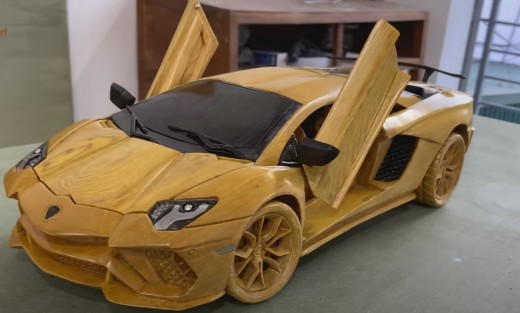 YouTube kanāla Woodworking Art autori nodemonstrējuši savu jaunāko veikumu - koka Lamborghini Aventador S.