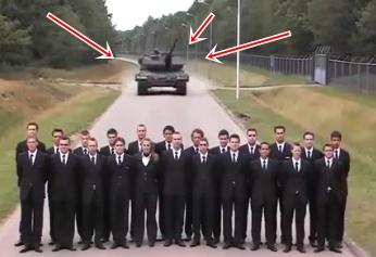 Ja nu tā nav fotomontāža, tad vīriem, kas stāv ierindā, nervi ir vēl stiprāki nekā tanka bruņas.