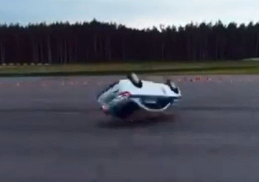 Konkursā "Ceļu patruļa" krievu policisti ar Lada Vesta demonstrē apgriešanos par 180 grādiem, taču sanāk tikai ... apgāšanās.