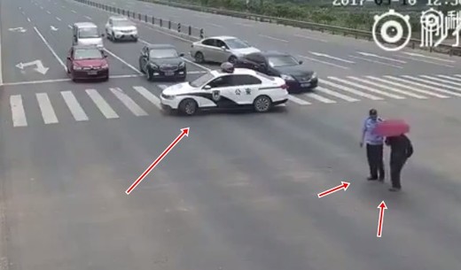 Policists Ķīnā pilnībā apstādina satiksmi, lai palīdzētu pāriet ielu gados vecai sievietei. Video autors vaicā, kā vērtējat policista rīcību?