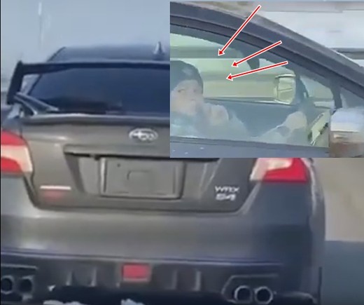 Autovadītājs panāk jaudīgu Subaru bez numuriem, kam pie stūres sēž aptuveni 10 gadus vecs puika.