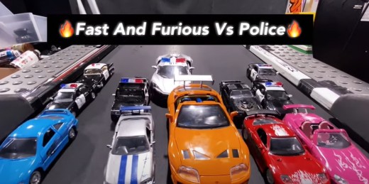 Kāds puisis izdomājis, ka rotaļu elektroauto var uzlikt uz elektriskā skrejceliņa un palielinot ātrumu, noskatīties kura no mašīnītēm visilgāk noturēsies "trasē".