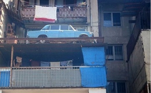 Leģendārais zilās krāsas VAZ-2106, kas pirms 27 gadiem tika pacelts un nolikts uz kādas Tbilisi daudzdzīvokļu mājas ceturtā stāva balkona, beidzot atgriezies atpakaļ uz zemes.