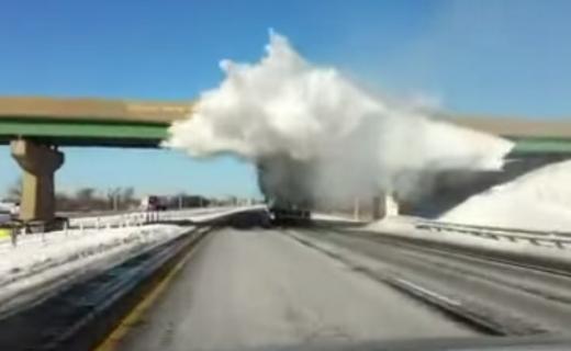 Smagais automobilis efektīvi noslauka sasnigušo sniegu.