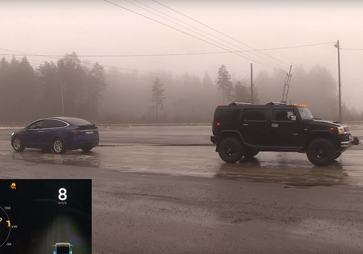 2600 kg smagais Tesla Model X versijā P90D aprīkots ar diviem elektromotoriem, kas attīsta 670 Zs un 970 Nm, bet Hummer H2, kura pašmasa ir 3200 kg, komplektēts ar 6,0 litru V8 benzīna motoru, kas attīsta 315 Zs.