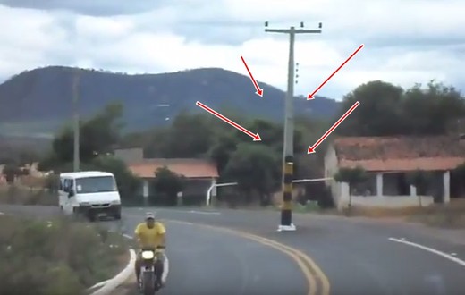 Tikai Brazīlijā - elektrības stabs braucamās daļas vidū (+ video)