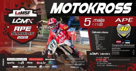 Motosporta draugi! Svētdien, 5. maijā Apē notiks Latvijas čempionāta motokrosā otrais posms, vienlaicīgi tas būs arī Igaunijas čempionāta 2. posms, pulcējot spēcīgus abu valstu motokrosistus.