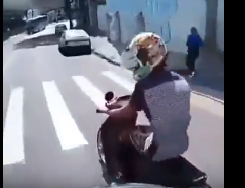 Motorizētā patruļa pieprasa apstāties, taču skūtera vadītājs uzsāk bēgšanu un, kad viņš uz gājēju pārejas gandrīz notriec cilvēkus, policists nekavējas un mirkli vēlāk neitralizē bēgli ar kājas spērienu.