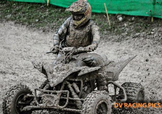 Lai gan svētdienas sacensības sākās ar patīkamiem laika apstākļiem, dienas otrajā pusē trasi sasniedza pamatīgs negaiss, rezultātā dubļu dēļ sportistus pēc braucieniem bija grūti atpazīt. Pamatīgie nokrišņi mainīja sacensību gaitu un pirmajā braucienā uzvaras laurus plūca holandiešu braucējs Maiks van Grinsve (Mike Van Grinsve), otro vietu izcīnīja mājinieks, francūzis Adrians Mangieu (Adrian Mangieu), bet trešais finišēja Latvijas pārstāvis Edgars Meņģelis.
