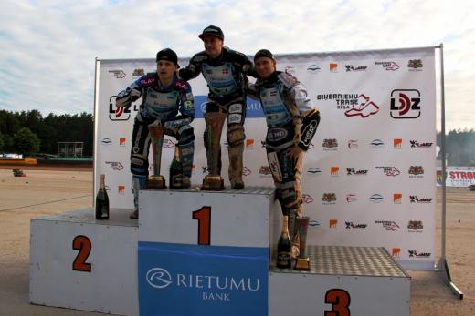 Grand Prix (GP) pretendentu pusfinālā Biķernieku spīdveja trekā šodien triumfēja dānis Leons Madsens, kurš ieguva 14 no 15 iespējamajiem punktiem. Otro vietu ieguva Ukrainas pārstāvis Adrijs Karpovs (12 punkti), bet vislielākās ovācijas Rīgā izpelnījās trešās vietas ieguvējs, Latvijas braucējs Ķasts Puodžuks, kurš papildbraucienā par trešo vietu pārspēja Aleksandru Loktajevu no Ukrainas (abiem pa 10 punktiem).
