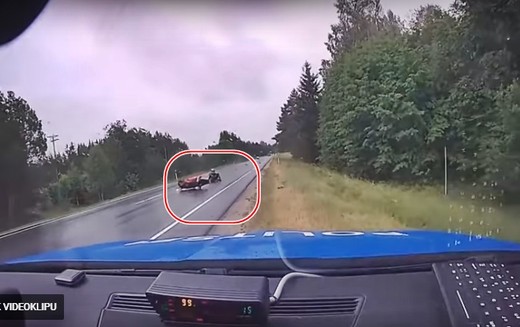 Video no Igaunijas. Ieraugot policiju, ar 160 km/h braucošs motociklists nobīstas un strauji bremzējot krīt, vairākus simtus metru nošļūcot pa slapjo asfaltu uz sava dibena.