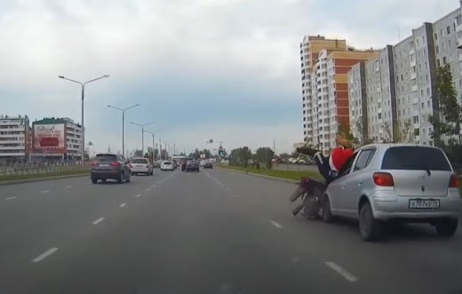 Divi puiši ar motorolleru pagriezienu pa labi sāk no trešās joslas, taču plānoto manevru viņiem tā arī neizdodas pabeigt.