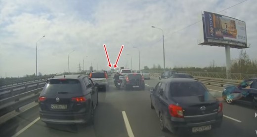 Redzēdams, ka autovadītāji nesteidz atbrīvot ceļu neatliekamās palīdzības automobilim ar iedegtām signālgaismām, motociklists doas palīgā.