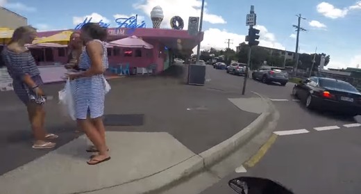 Motociklists pazaudē uzmanību skatoties uz meitenēm ielas malā, kā rezultātā piedzīvo avāriju, uztriecoties vieglajam auto.