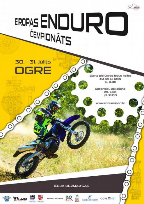 Jau nākamās nedēļas nogalē - no 29. – 31. jūlijam - Ogrē norisināsies trešais Eiropas enduro čempionāta posms, pulcējot vadošās Eiropas enduro komandas un motobraucējus no 18 valstīm. Šobrīd sacensībām pieteikušies 150 dalībnieki, tostarp 13 sieviešu klases sportistes.
