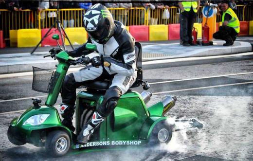 Britu konstruktori un mehāniķi Deivids Andersons un Metjū Hains veikuši jaunu ierakstu Ginesa rekordu grāmatas Ātruma nodaļā – viņi ar pārbūvētu invalīdu skūteri sasnieguši 173,16 km/h.
