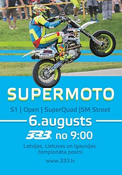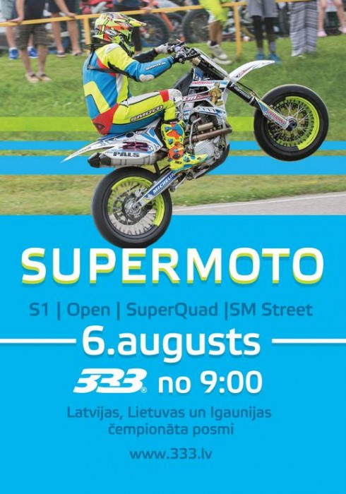 Šo sestdien, 6.augustā Ropažu sporta kompleksā „333” norisināsies šīs sezonas 4. Latvijas un Lietuvas, kā arī 5. Igaunijas čempionāta posms supermoto. Šobrīd uz sacensībām pieteikušies labākie braucēji no Baltijas, bet papildus konkurenci sagādās arī sportisti no Somijas, Lielbritānijas, Polijas un Krievijas.