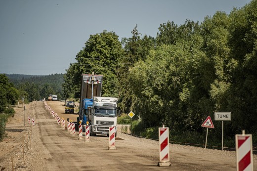 Fotoreportāža: kā notiek remontdarbi uz reģionālā autoceļa Tukums-Kuldīga starp Tumi un Sātiem (+ FOTO)