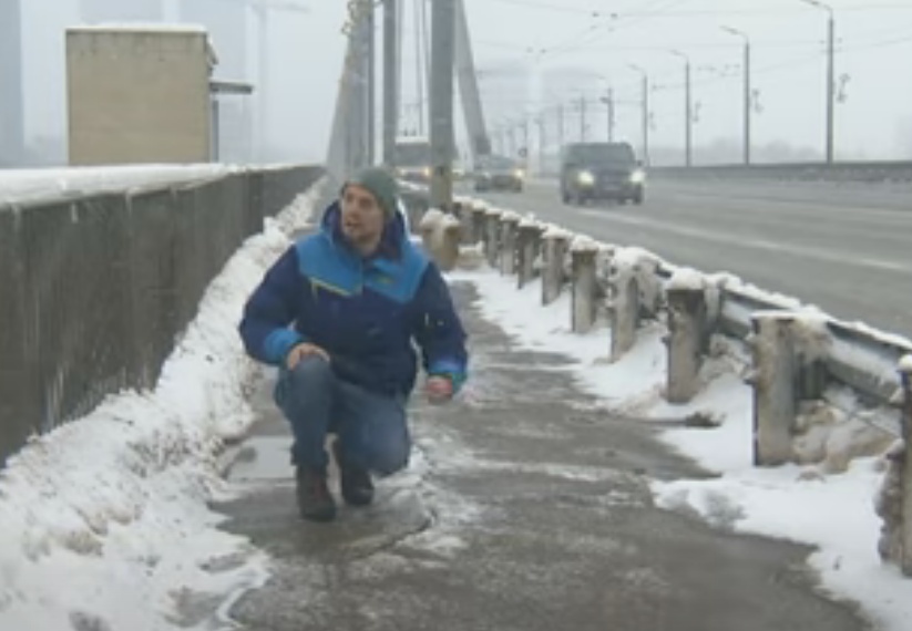 Vai līdz ar sniegu kūst arī asfalts uz Vanšu tilta ietvēm? (+ VIDEO)