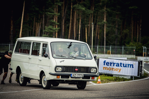 Sacīkstes sākās ar aizraujošu dueli ar elektrokartingiem, kurā pārāks izrādījās Baumanis. Pēc tam sekoja pārsteigums abiem sportistiem – stafete ar leģendāro mikroautobusu Latvija, ar kuru trasē bija jāsavāc savi komandas biedri un pēdējie 30 metri auto jāstumj līdz finišam.