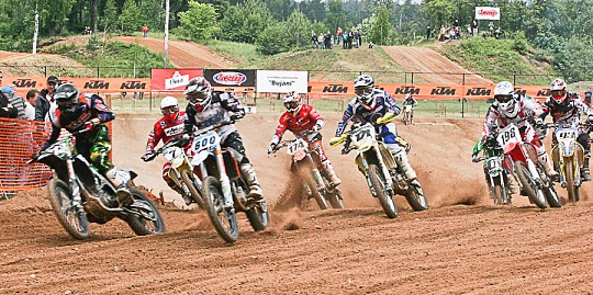 Pirmajā braucienā trīs apļus pirms finiša no sacensībām izstājās viens no stiprākajiem konkurentiem Toms Macuks (RODEO). Kā pastāstīja sportists, neiespējami cīnīties, ja motocikla amortizācija neatbilst nepieciešamajai. Stelpē šī apstākļa dēļ Toms krita un tika iegūta plaukstas trauma, tad Cēsīs cieta ceļgals. Čempionāta kopvērtējumā līderi paliek nemainīgi 1. Vytautas Bučas (219), 2. Dāvis Ivanovs (183), 3. Dāvis Līvs (163). MX2 klasē galvenā cīņa noritēja starp K.Serģa motoklubs sportistiem Paulu Jonasu, Jāni Kārkliņu un Kārli Sabuli no Dako Ziemeļvidzeme.
