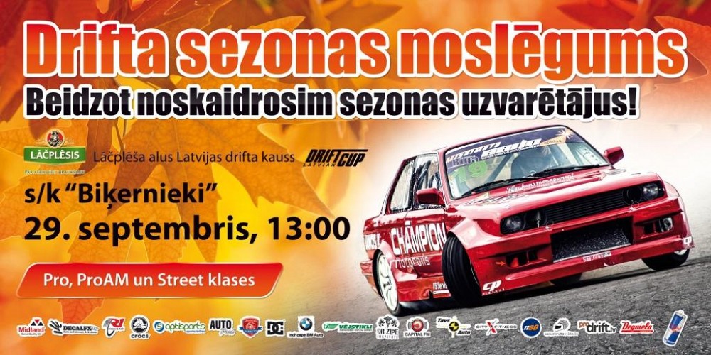 Tātad viennozīmīgi, 29.septembrī būs ko redzēt, noskaidrosim beidzot sezonas kopvērtējuma uzvarētāju pjedestālus visās klasēs, apsolām emocijām bagātas un drifta pilnas sacensības.