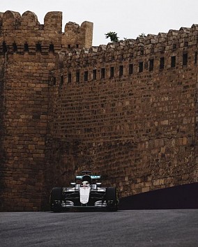 Pirmajos F-1 treniņos jaunizveidotās Baku trases vēsturē ātrākos laikus uzrāda "Mercedes" piloti