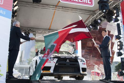 Foto: Valsts prezidents Raimonds Vējonis un Liepājas domes priekšsēdētājs Uldis Sesks atklāj jubilejas ralliju "Kurzeme".