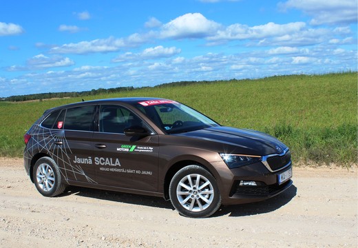 Testa braucienā dodos ar "Škoda Scala 1,5 TSI DSG Ambition". Jaunais 1,5 litru motors ar DSG pārnesumkārbu raduši teicamu saskaņu. Dzinējs ir gana elastīgs jau pie zemiem un vidējiem apgriezieniem. Derēs arī tiem, kas bieži pārvietojas ar pasažieriem un bagāžu. Starts no vietas līdz simtam – 8,2 sekundēs. Vairāk nekā pietiekama dinamika apvienota ar degvielas ekonomiju. Taupības pamatā ir automātiska divu cilindru atslēgšanās, ja nav nepieciešamās slodzes. Līdz ar to, taupīgi braucēji var viegli sasniegt ražotāja norādīto vidējo patēriņu – 5,0 l/100 km. Testa braucienā, necenšoties speciāli turēties taupības režīmā, iznāca tērēt vidēji ap sešiem litriem benzīna uz 100 kilometriem, kas ir ļoti labs rādītājs.