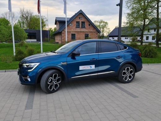 Izbraucu apli ar Zanzibar Blue krāsas jaunāko Arkana (cenā ap 28 900, jo Intens Zen+) 1,3 TCE 140EDC - 2,72 m riteņu bāzes un 200 mm klīrensa krossovers ar skaistu, sīkumos gana nostrādātu, aerodinamisku kupejas stila virsbūvi.