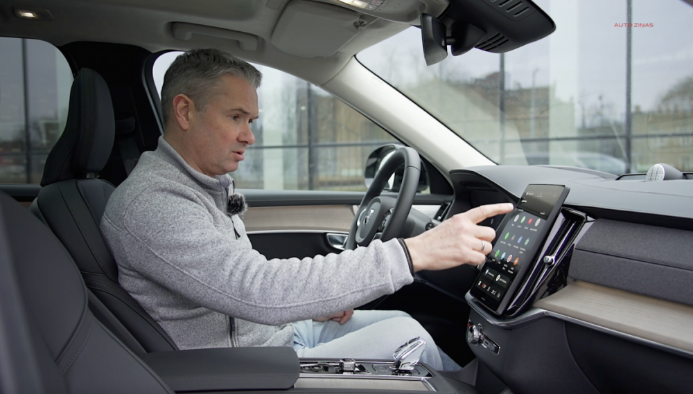 Volvo XC90 interjers joprojām ir omulīgs un kvalitatīvs. Tajā maz kas mainījies, un pamanāmākais jaunums ir lielāks centrālais ekrāns. Iedarbināšana arvien notiek ar pagriežamu slēdzi. Pirms braukšanas nepieciešams noregulēt sēdpozīciju. Cik sarežģīti gan tas var būt? Šeit - necik, jo atšķirībā no EX90, kur visas regulēšanas vadāmas caur ekrānu, XC90 tas notiek ar ierastajām vadības ierīcēm. Stūresrats vispār regulējams mehāniski, ar roku - nekādas elektropiedziņas!