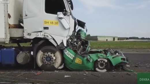 Vācijas Dekra speciālistu veiktais eksperiments pierāda, cik bīstama ir situācija, kad vieglais automobilis paliek starp diviem smagsvariem. Avārijas gadījumā izdzīvot vieglajā auto praktiski nav iespējams.