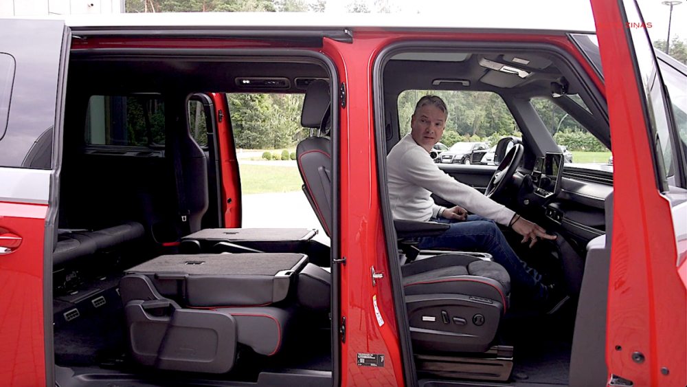 Abās pusēs ir tik platas durvis, kas ļauj brīvi šiverēt pa salonu. Sēdekļus aizmugurē, protams, var izņemt vispār, tomēr salikšanas variants ar pilnībā nolocītām sēdekļu atzveltnēm ir praktiskāks. Lai iepazītu vadītāja vietu, jāaizver visas durvis. Slīddurvis protams to dara elektriski. Sēdekļi ar samtainu apdari un izvelkamu paceli šķiet tādi paši kā Golf GTI.