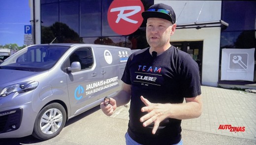 Tas nozīmē, ka furgonam ir ne tikai LED starmeši, bet arī pusādas sēdekļi ar apsildi, tāda pati stūre. Šim Peugeot e Expert ir ne tikai divas durvis, bet tās ir ar elektropiedziņu. Tā ir reti sastopama ekstra. Atkarībā no garuma - un to var būt trīs, elektriskajam Expert ir 50 vai 75 kW baterija. Motors gan ir tikai viens - 100 kilovatu. Kas ir svarīgi, Peugeot elektrobusa nobraukums ir krietni virs 300 km. Lai uzzinātu, ko par elektrisko busu perspektīvām Latvijā domā uzņēmēji ielūdzām uz testa braucienu veikalu tīkla Fans velosipēdu divīzijas vadītāju Juri Mikulenu. Viņam šī bija pirmā tikšanās ar kravas elektromobili. Vairāk skaties TV Auto ziņu sižetā.